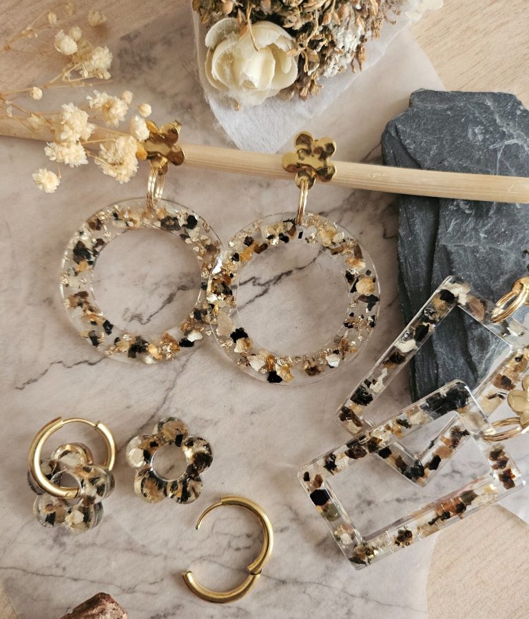 Explorez notre collection et laissez-vous séduire par l'univers délicat et coloré de nos boucles d'oreilles en résine époxy faites à la main. Chaque paire raconte une histoire, la vôtre.